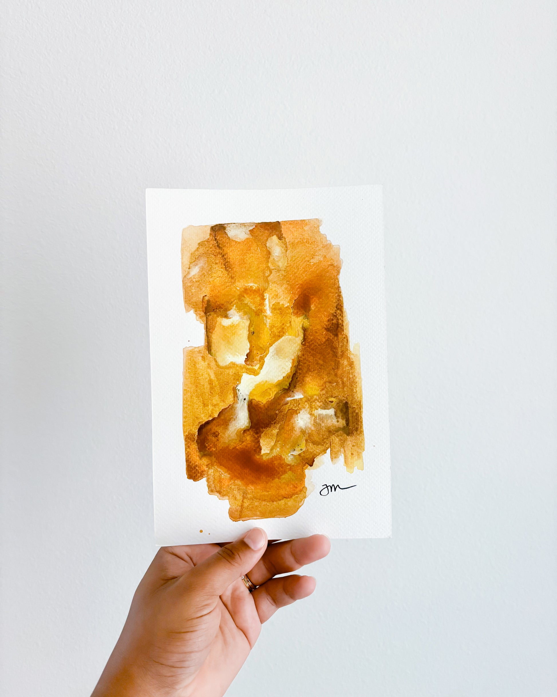 ‘In This Stillness' captures the warmth, comfort and quietude of the autumn season in abstract form with earthy hues of ochre, umber, auburn and ivory. This piece inspires a sense of restfulness and soulful connection, reminiscent of this beautiful and restorative time of year - to embrace the present, savor the moment, enjoy the little things that warm the soul, and be still.